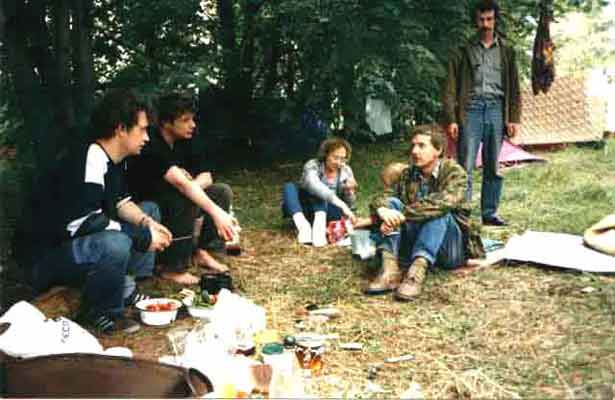 4-й слёт "Визбор - это мы!" (М.Ельчанин, С.Вильк, М.Чистякова, В.Пальвелев, Д.Захаров) | фот.: Т Князева | июнь 1998 |