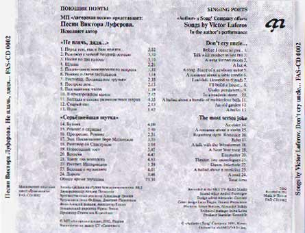© 1993, МП Авторская песняПродюсер С.КоренблитЗвукорежиссер А.ПозмоговОформление Д Перышков, Л.Фейгин